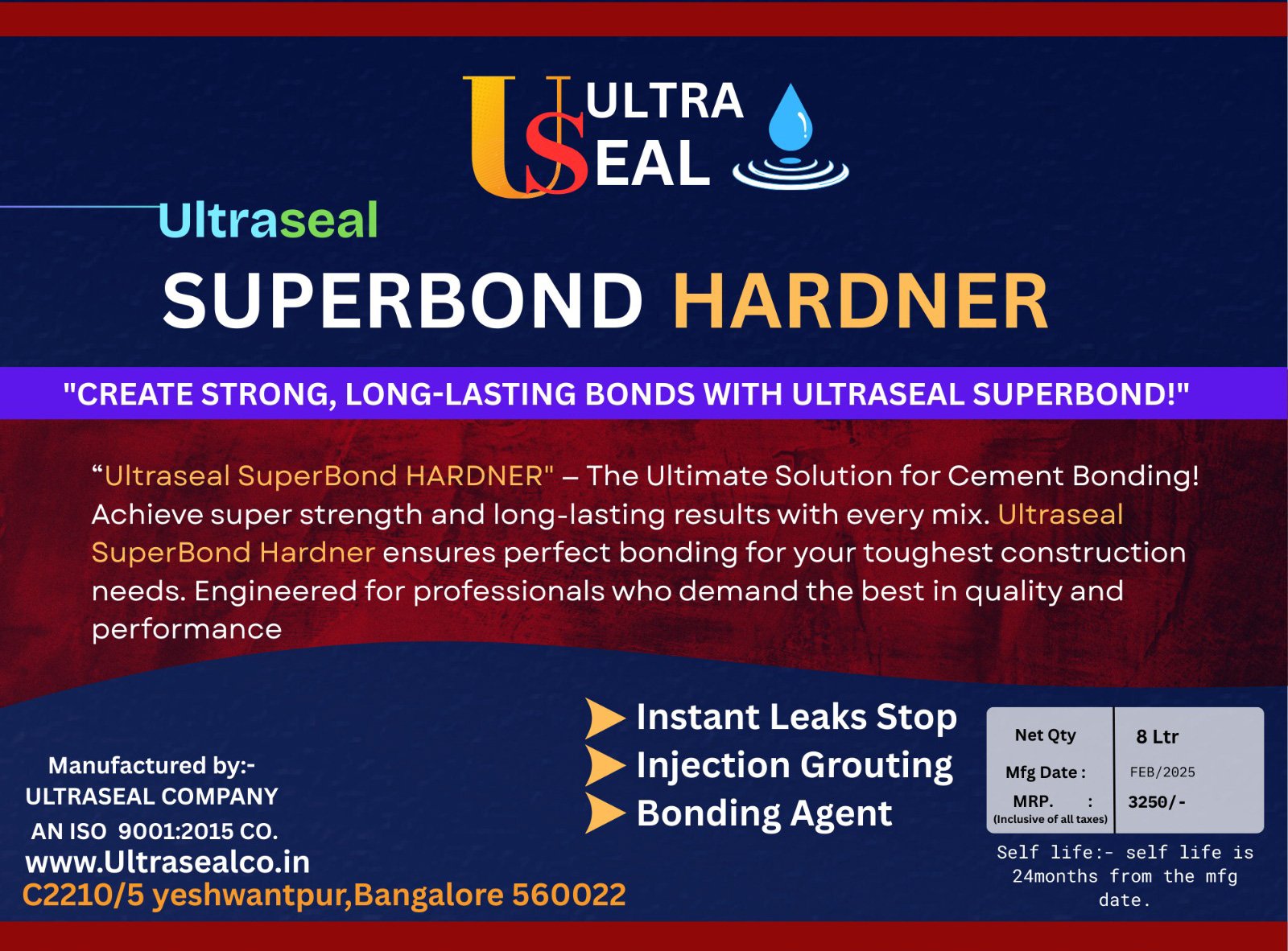 The Ultimate Solution for cement bonding achieve super strength and long-lasting results with every mix. Ultraseal Superbond Hardner ensures perfect bonding for your toughest construction needs. Engineered for professionals who demand the best in quality and performance.